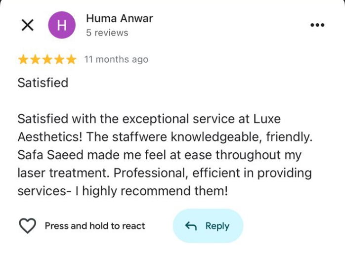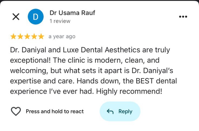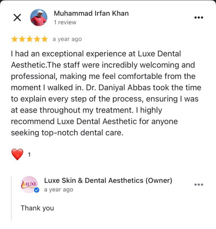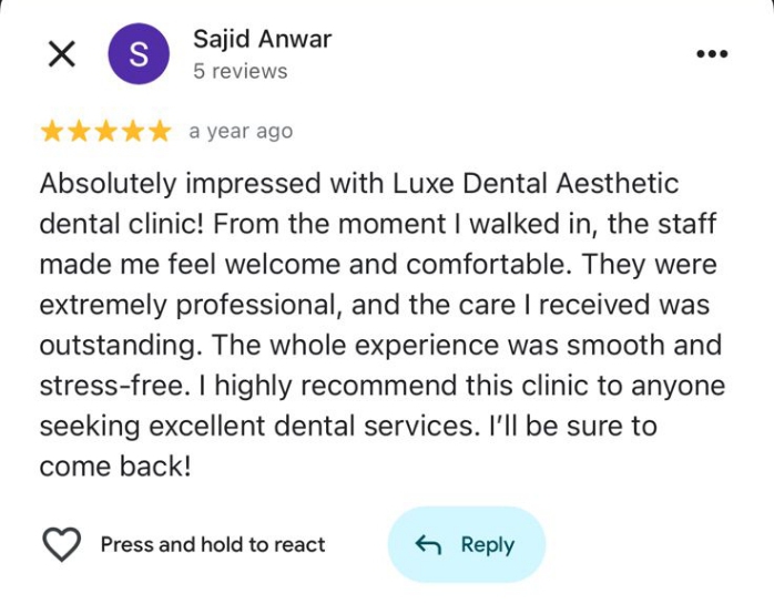 Real feedback from our happy patients at Luxe Dental Aesthetics