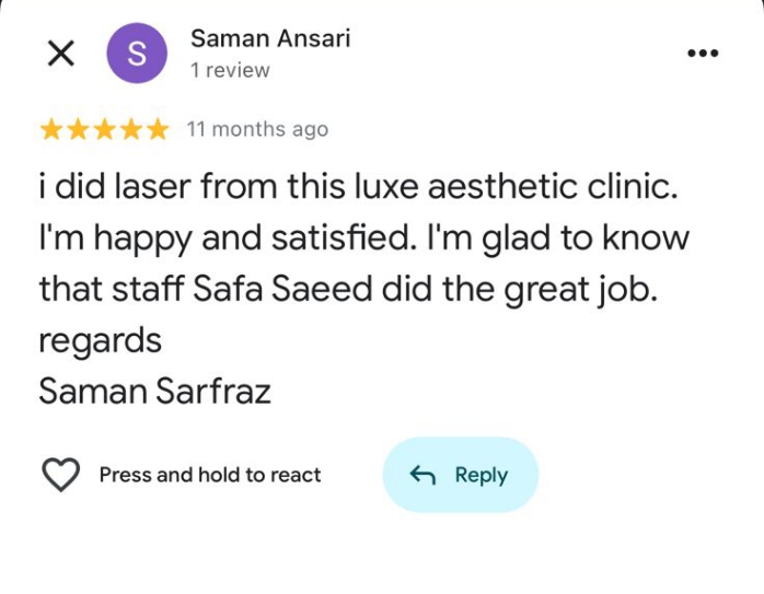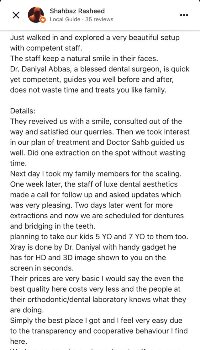 Real feedback from our happy patients at Luxe Dental Aesthetics